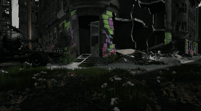 Building assets to allow you to build your own bases, using scavanged parts scattered throughout the world, not all are unprotected,