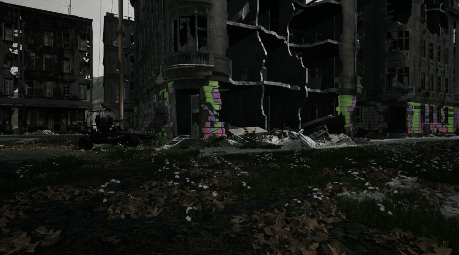 Building assets to allow you to build your own bases, using scavanged parts scattered throughout the world, not all are unprotected,